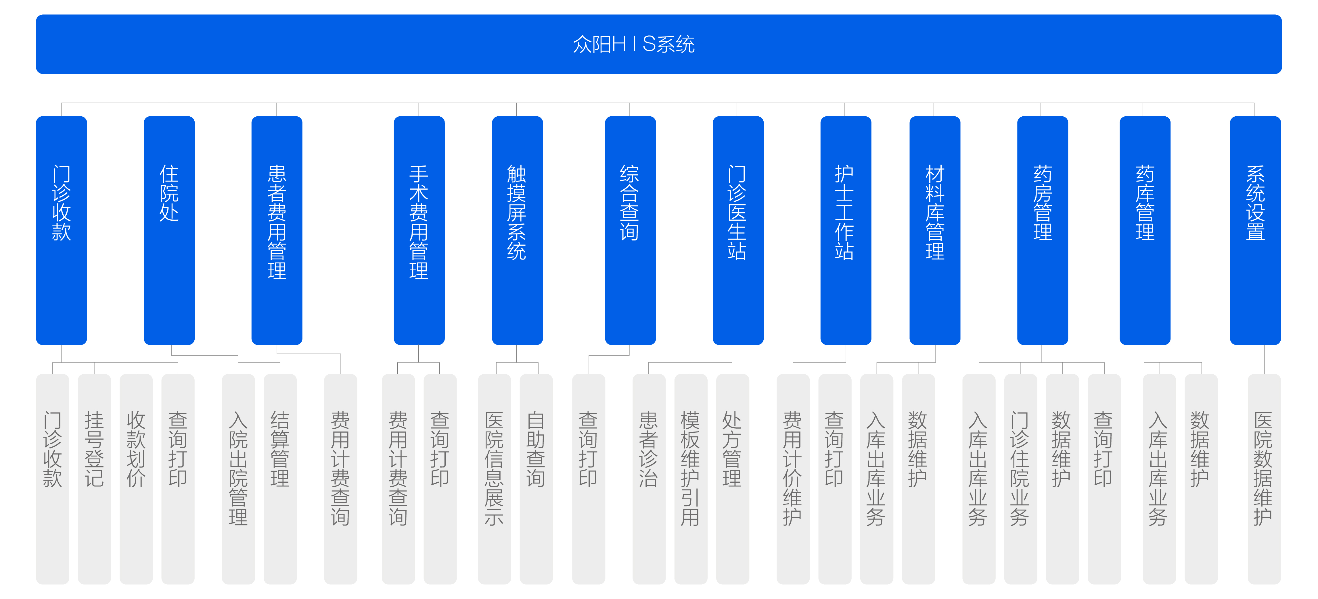 众阳HIS系统是“一体化数字化医院”的基础系统,采用组件化设计、面向服务的体系架构(SOA),完全B/S模式,方便易用,更加注重客户体验,灵活的系统配置功能和产品化设计,能够适合各类医院业务流程,实施快速部署。
