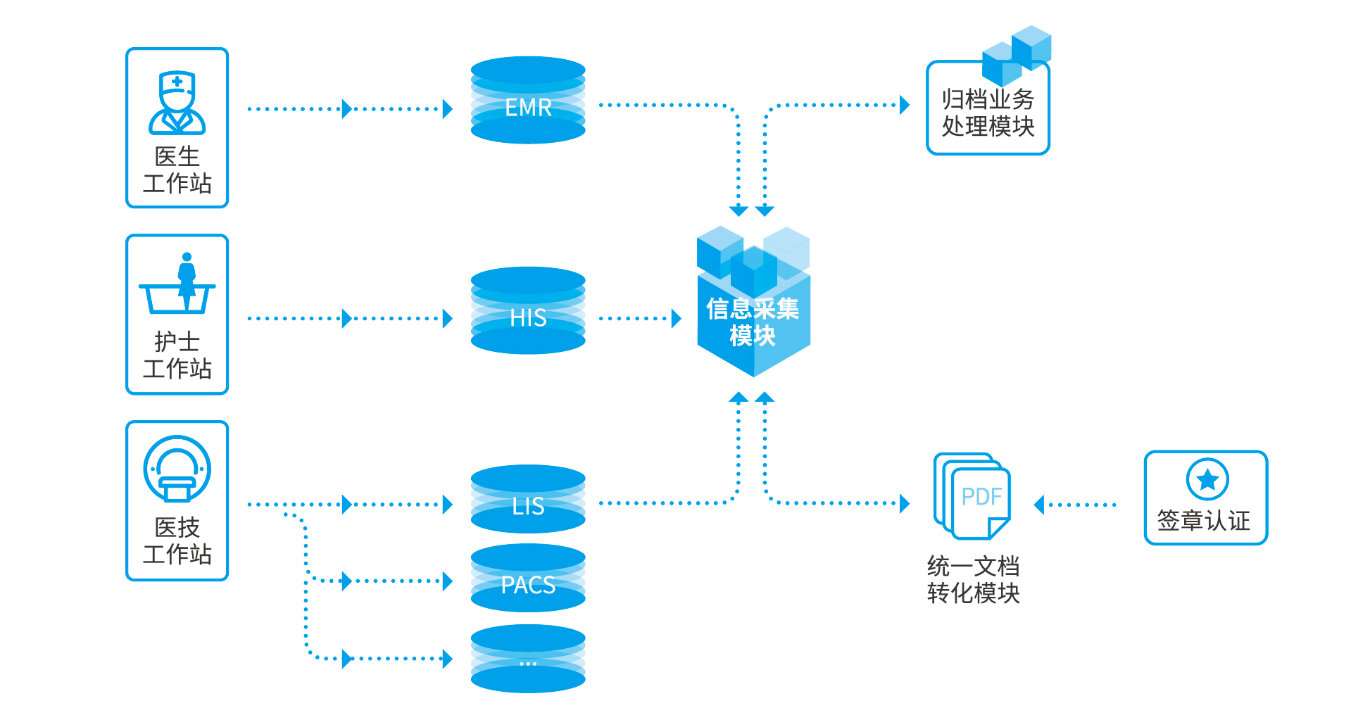 众阳云无纸化归档系统结合CA认证的电子签名,通过采集病历数据,包含病历文书、护理文书、医技产生的检查检验报告等,对已归档病历进行数字化、无纸化管理,提高病历存档管理工作效率,彻底解决传统纸质病历易丢失、易损坏、难储存的问题。