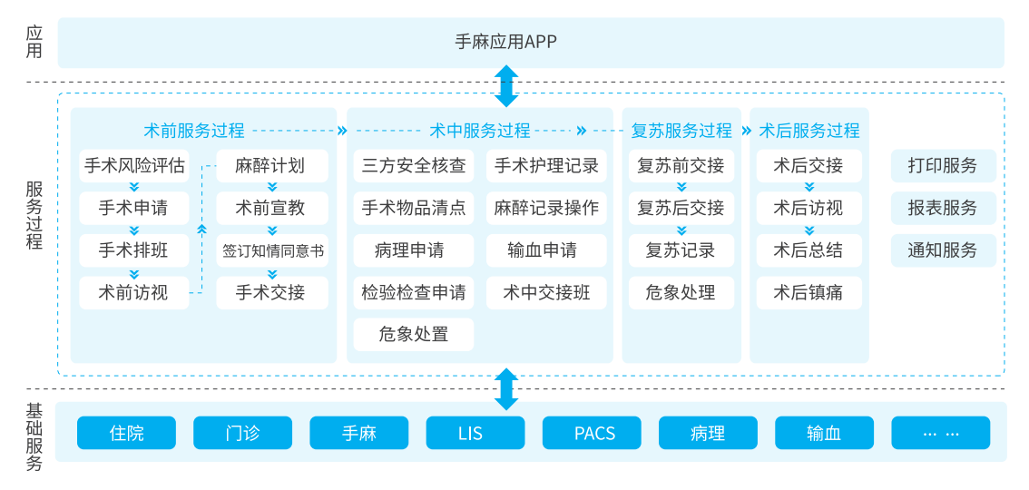 众阳手术麻醉系统覆盖患者术前、术中、术后整个围术期的全流程管理,能够将麻醉科的日常工作标准化、流程化和智能化,为实现以患者为中心的医护过程、为临床科研、为提高医疗水平奠定坚实的基础。系统以手术安全为目标,以质量控制体系为依据,以手术麻醉路径为路线,服务于手术和麻醉过程,为医护人员、科室领导、院科室提供智能化手术室整体解决方案。
