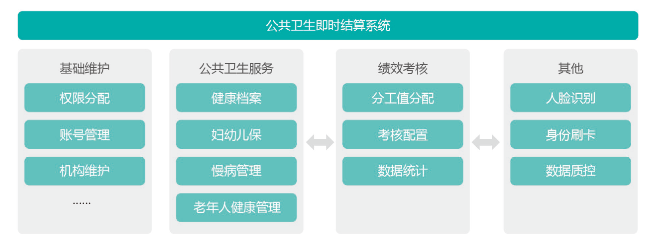 公共卫生即时结算系统将公共卫生服务中各项工作分解到平台各个功能模块,制定标准化工分值,通过身份证刷卡或人脸识别来确认服务真实性。通过对组织管理、资金管理、项目执行、项目效果四个角度的分析,系统内置考核方案,各区县根据自己的实际情况制定适合自己的灵活考核方案。