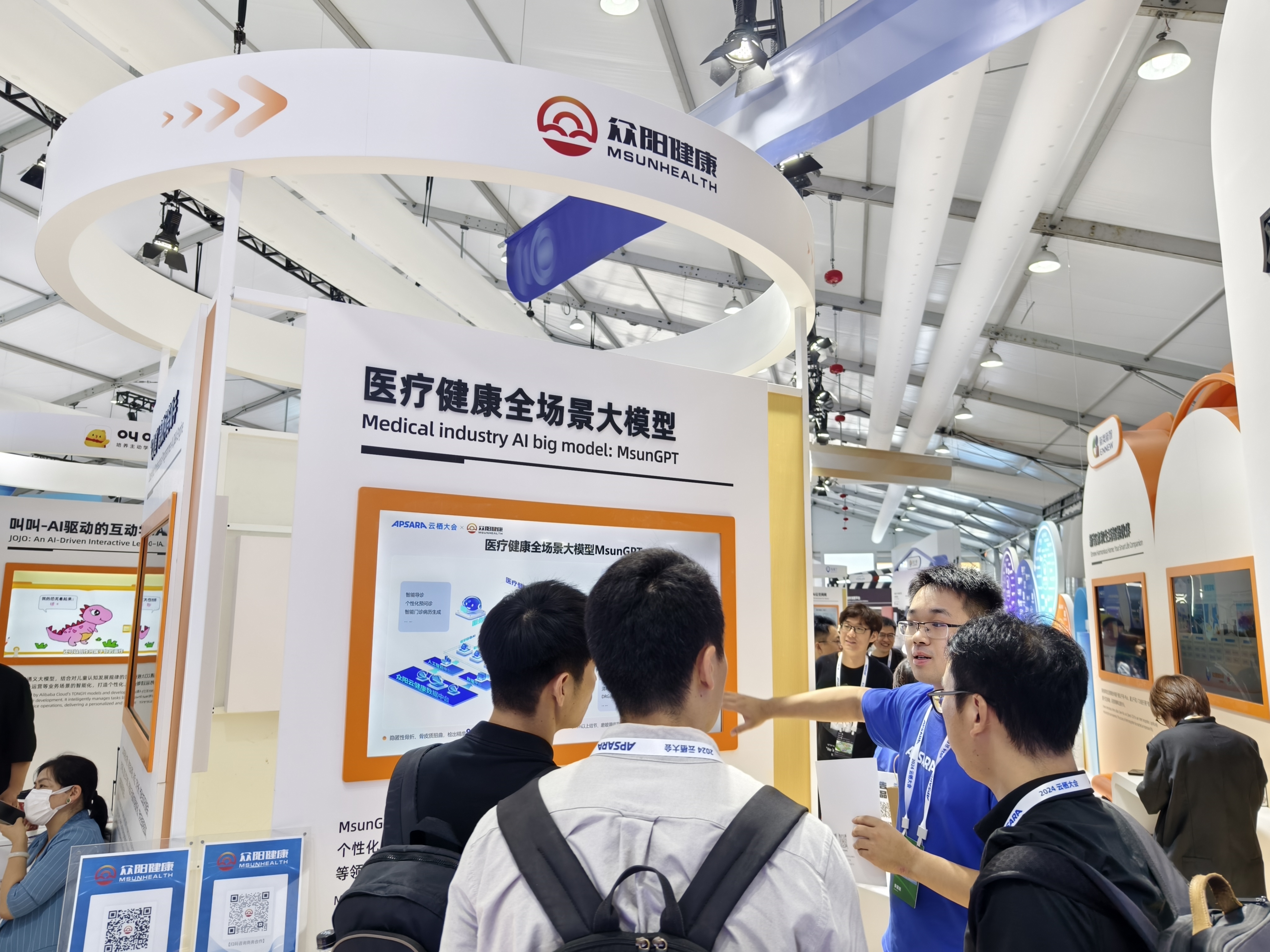 众阳健康作为以云模式构建医疗健康信息化体系的领军企业受邀参会,并重点展示了“云健康”平台和自主研发的全场景医疗健康大模型MsunGPT。